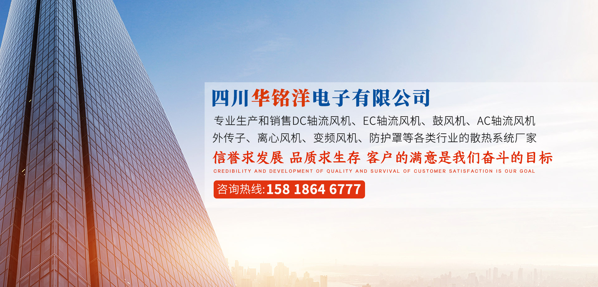 四川華銘洋電子有限公司是一家專業(yè)生產和銷售DC軸流風機、EC軸流風機、鼓風機、AC軸流風機、外傳子、離心風機、變頻風機、防護罩等各類行業(yè)的散熱系統(tǒng)廠家。